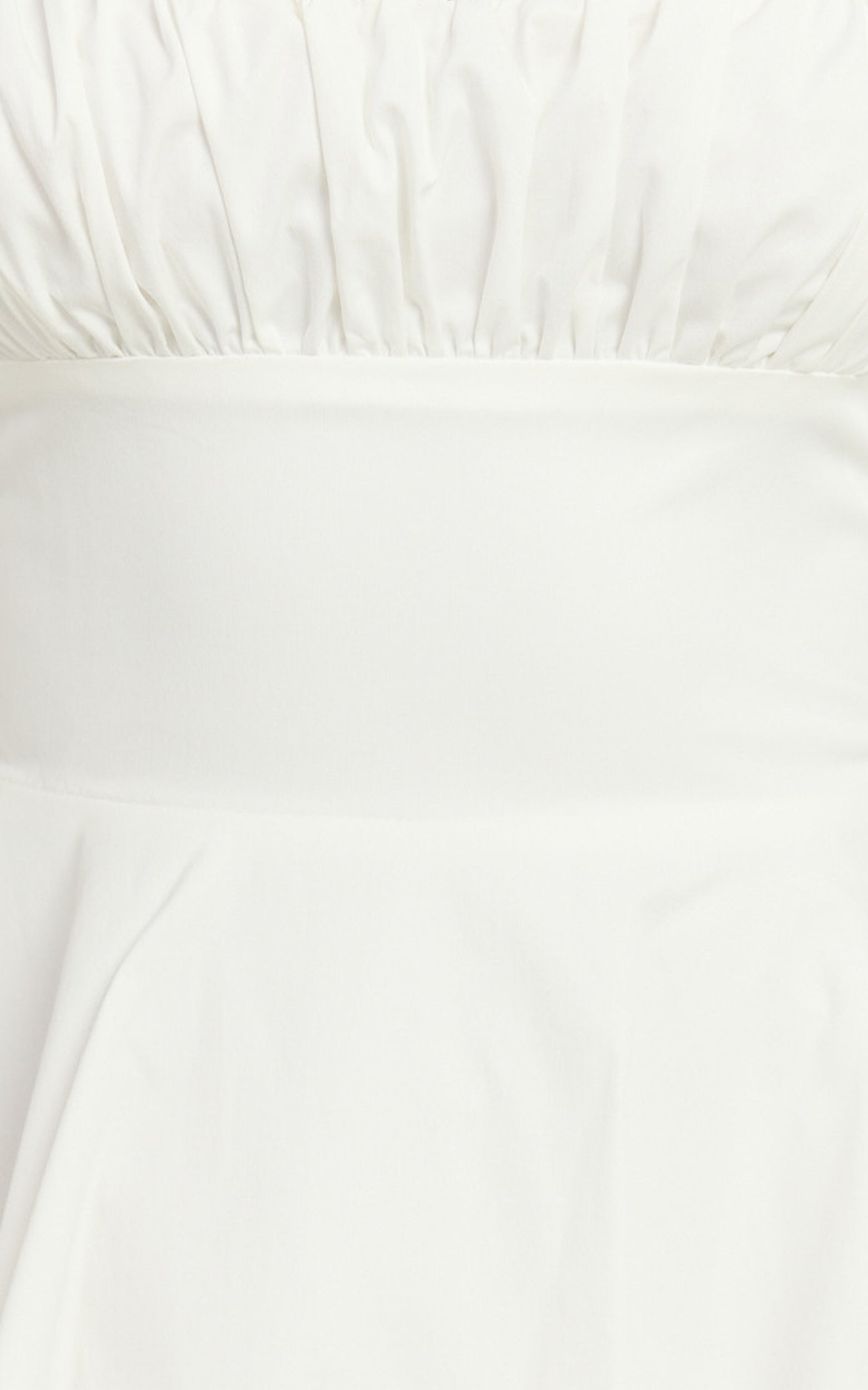 Sleeveless Ruched Bodice Lace Trim Dress in Off White