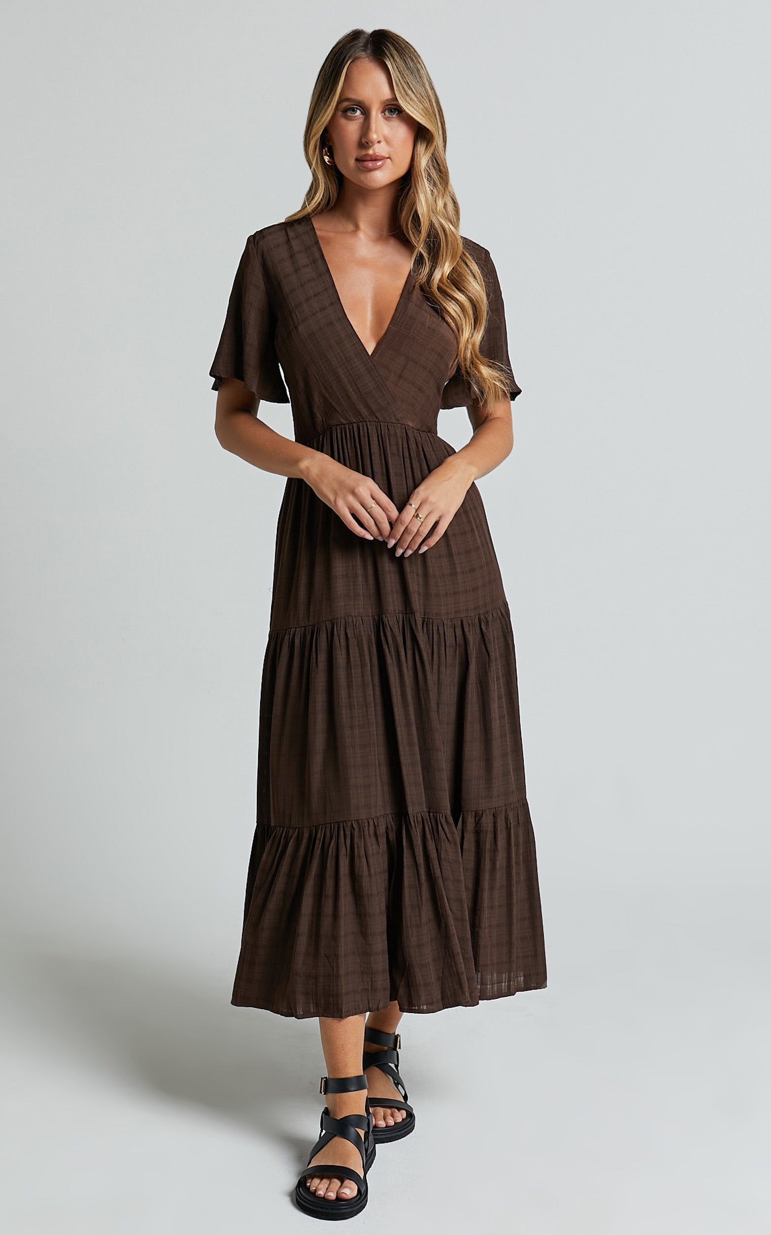 Flutter Sleeve Tiered Dress in Chocolate