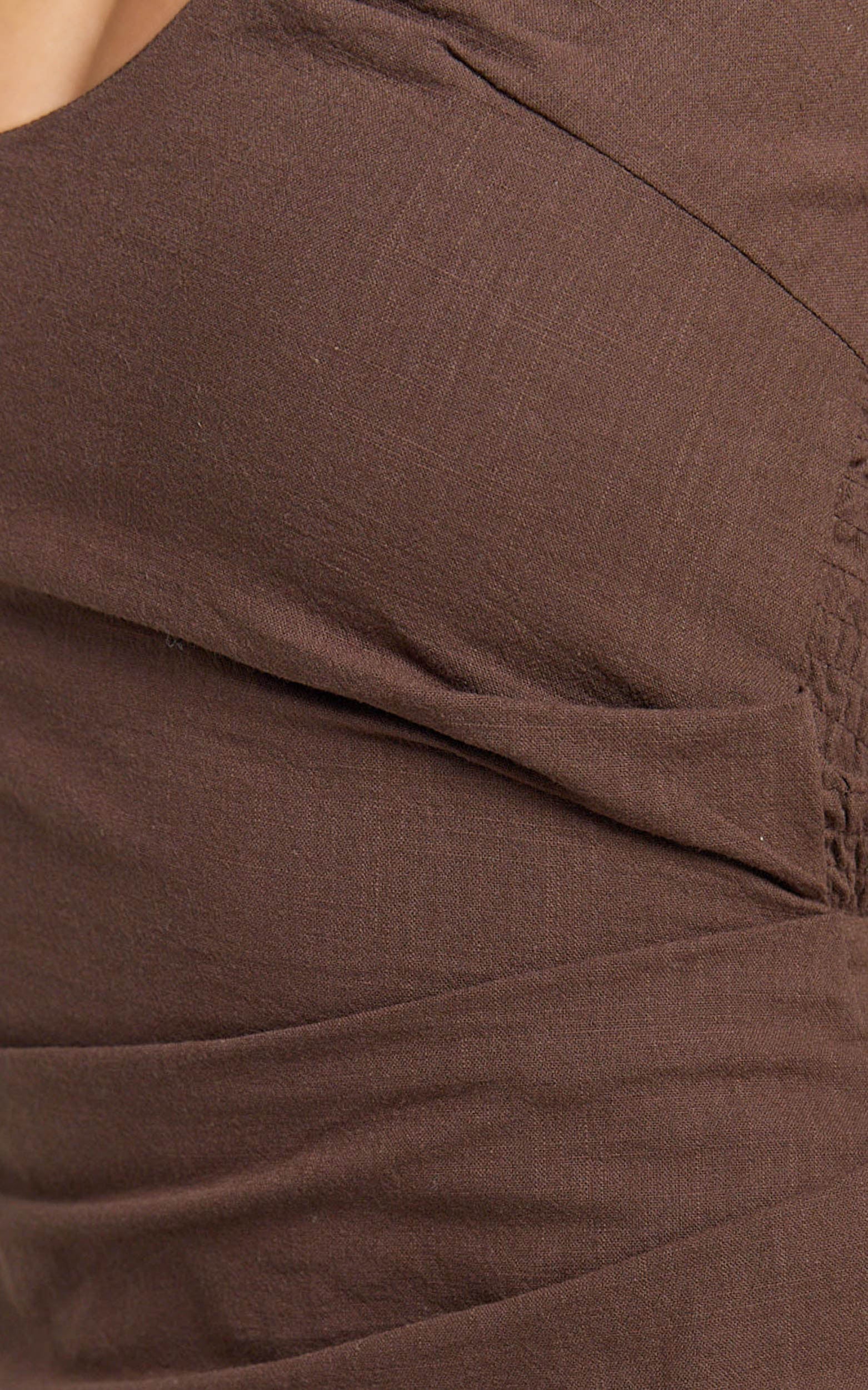 Deep U Halter Neck Dress in Chocolate